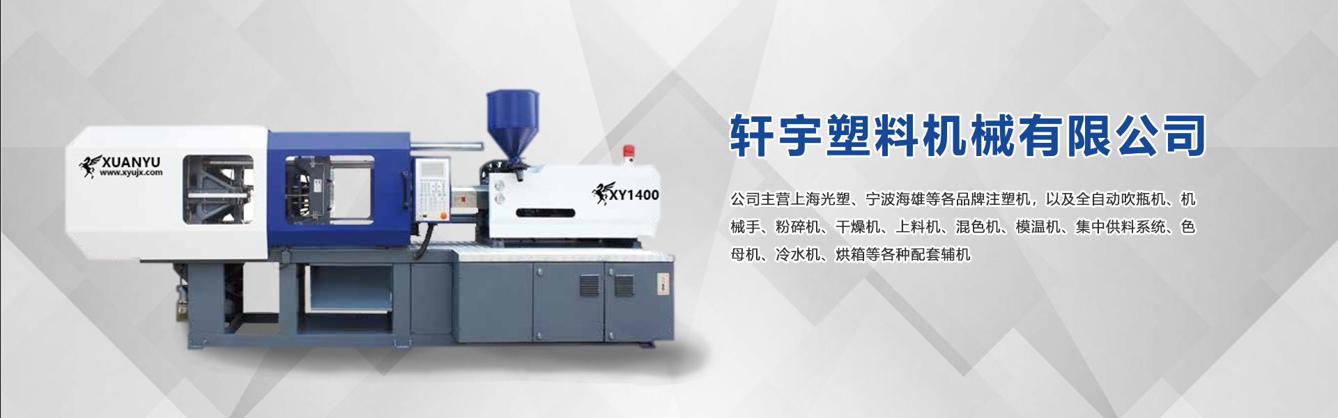 • 公司主營上海光塑、寧波海雄等各品牌注塑機,以及全自動吹瓶機、機械手、粉碎機、干燥機、上料機、混色機、模溫機、集中供料系統、色母機、冷水機、烘箱等各種配套輔機。
